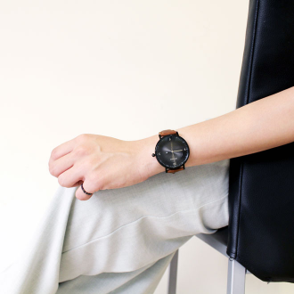 VINYL-Leather strap wrist watch / Black